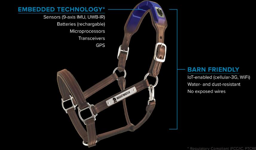 为解决这一问题,美国和加拿大的公司借助传感器、无线通信、边缘计算等先进技术,合作开发了一款名为NIGHTWATCH的智能缰绳,同时搭配有可选的安全颈圈。据悉,该智能缰绳于去年通过相关技术认证及安全测试后,现已用于美国和加拿大的一些马匹身上。